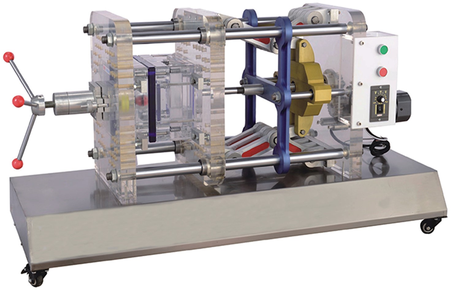 透明注塑機(jī)模型,注塑機(jī)教學(xué)模型,透明液壓注塑機(jī)演示模型,模具拆裝實訓(xùn)室-主要服務(wù)于模具設(shè)計與制造專業(yè)的核心課程《沖壓模具設(shè)計與制造》、《塑料模具設(shè)計與制造》的實訓(xùn)教學(xué),通過模具的拆裝,學(xué)生可以了解各類沖壓模具、塑料模具的工作原理,常用的塑料成型加工方法,掌握注塑成型加工的基本操作方法以及安全操作注意事項,開拓學(xué)生視野,激發(fā)學(xué)生學(xué)習(xí)模具的興趣,提高教學(xué)效果。